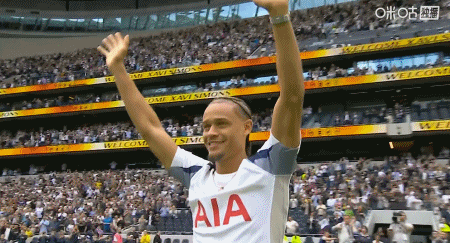 赛前,新加盟热刺的哈维-西蒙斯身披7号球衣与球迷见面